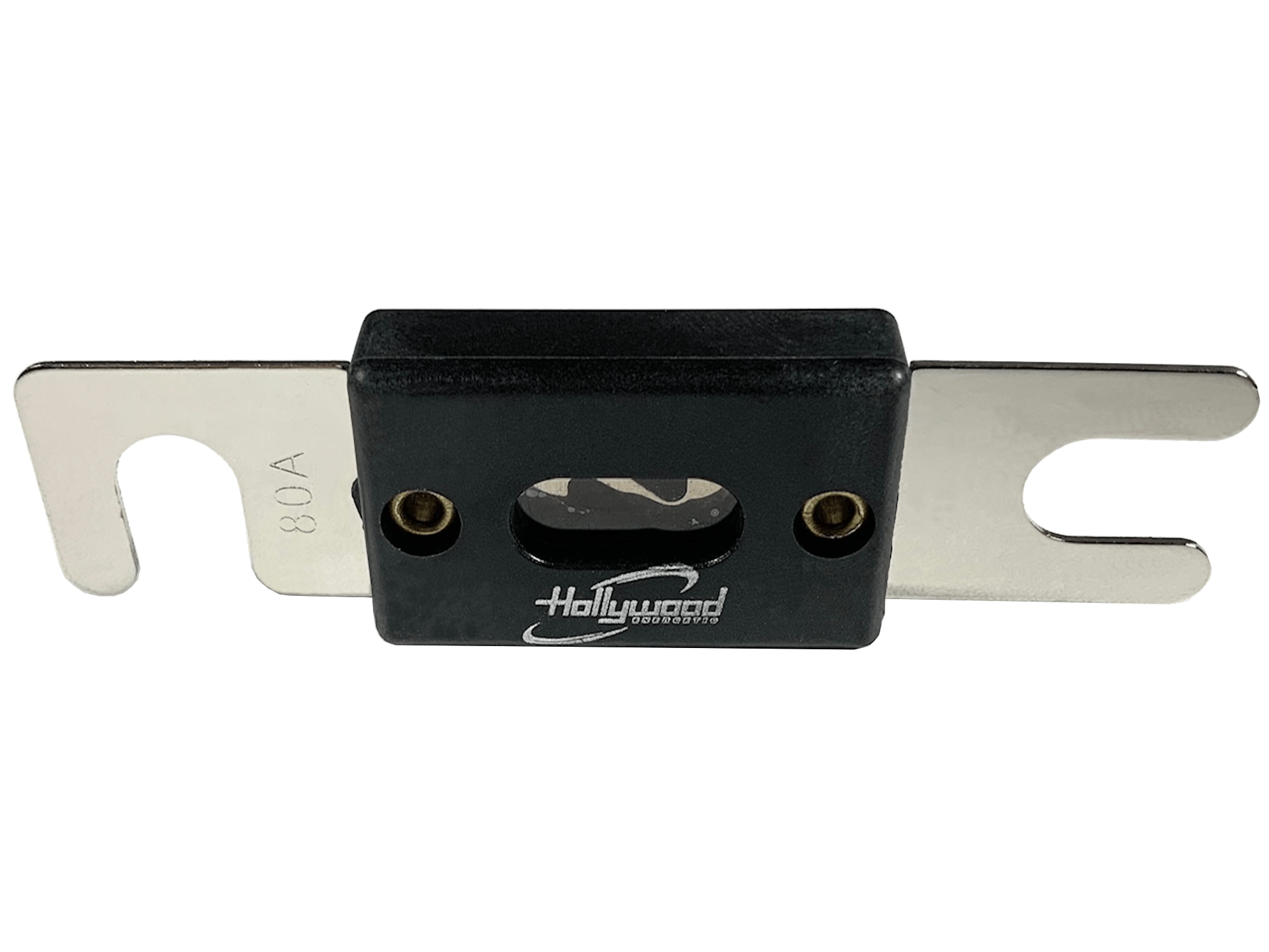 Es un fusible ANL (un tipo de fusible grande usado en sistemas de car audio y aplicaciones de alto amperaje) con una capacidad de 80 amperios.