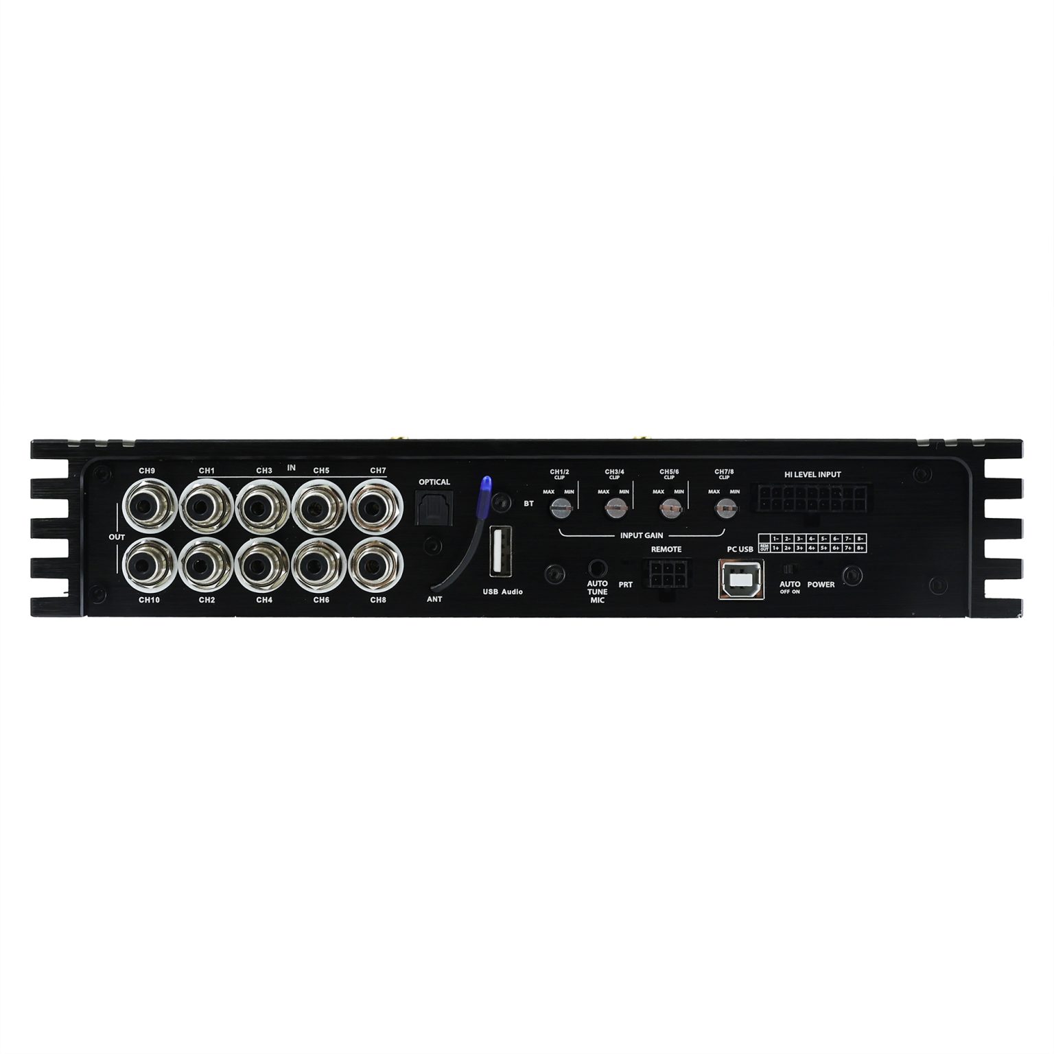 El RS-8150.8DSP10 también destaca por su conectividad avanzada, incluyendo Bluetooth 5.0 integrado, entradas de alta y baja señal (8 canales) y control completo mediante software desde PC.
