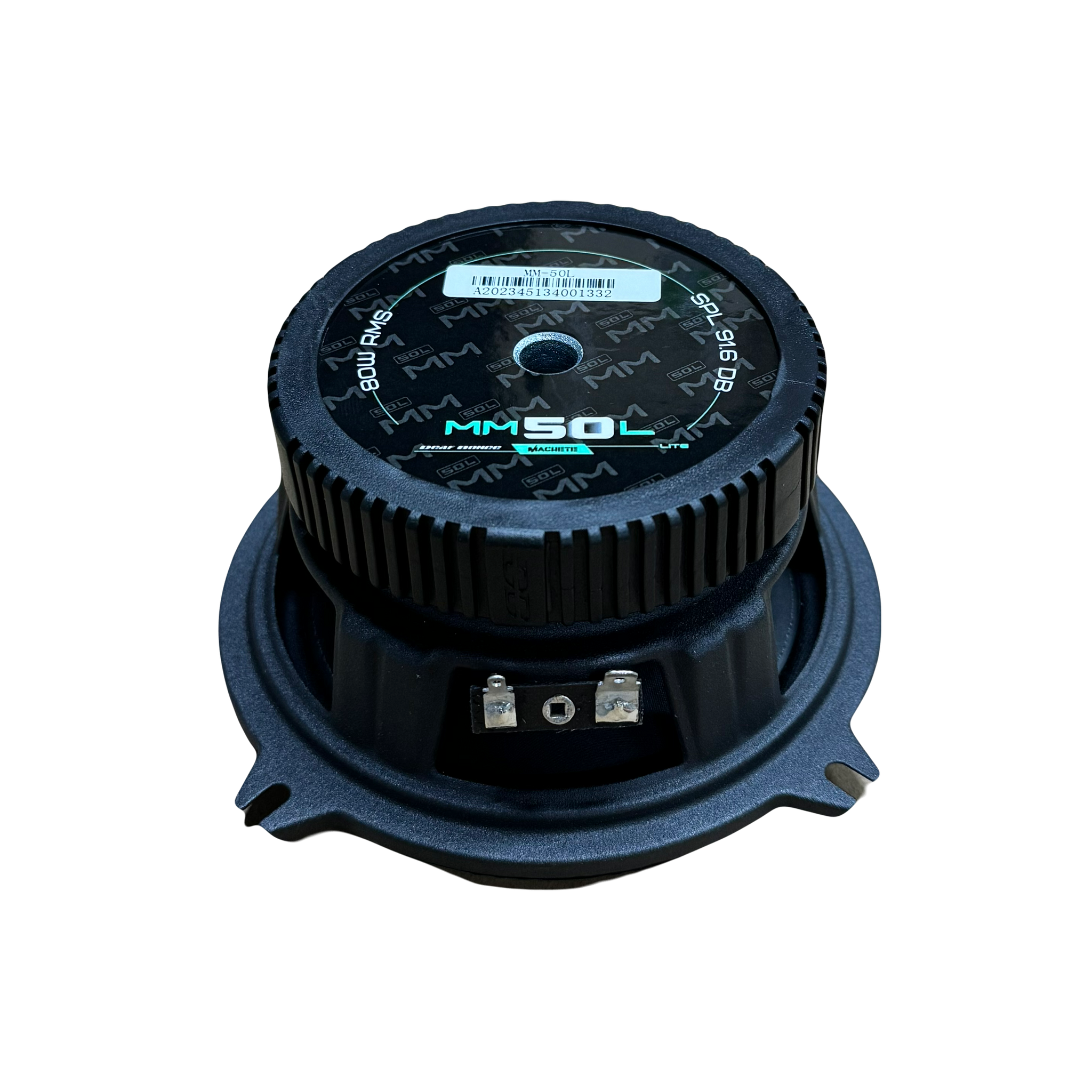 El Machete MM-50L es un altavoz de rango medio de 5,2″ (≈ 13 cm) diseñado para reproducir con claridad las frecuencias medias — ideal si buscas mejorar la definición de voces e instrumentos en tu sistema de audio o coche. El Machete MM-50L ofrece una potencia RMS de 80 W y hasta 160 W máxima, lo que le permite entregar un sonido equilibrado y decente sin necesidad de un amplificador muy potente. Su cono de papel prensado, suspensión de tela, imán de ferrita y chasis de acero aseguran un rendimiento fiable y consistente incluso con uso continuado.